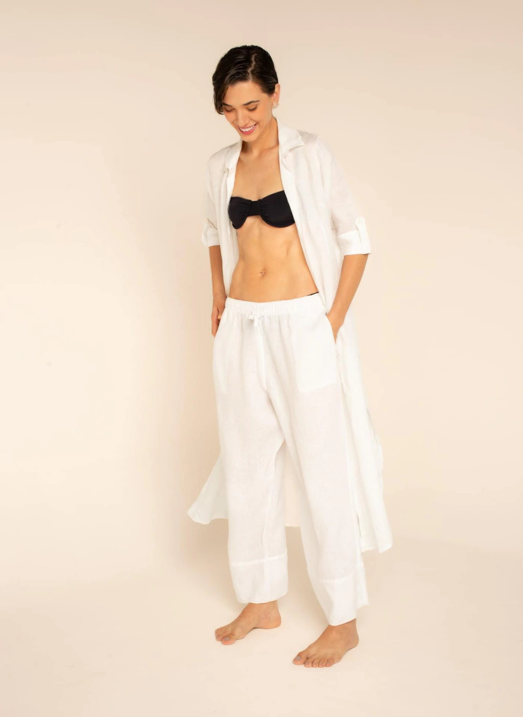 Camisa Cristal Branco Linho feita em material 100% linho.