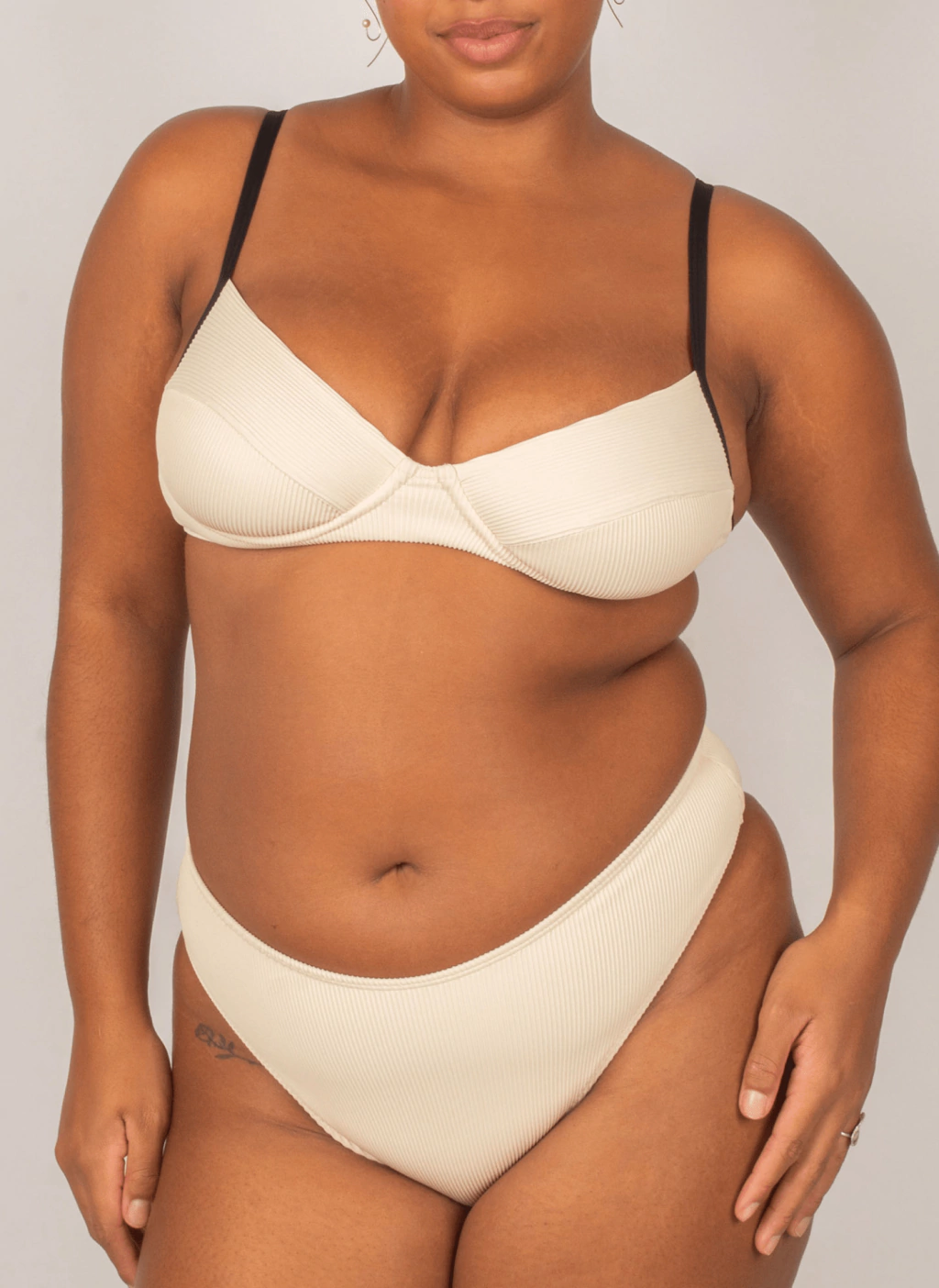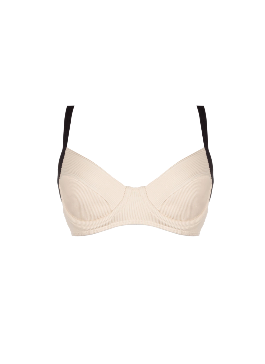 Neli OFF Ribbed Bio Top, half cup, complete with wide adjustable straps for maximum comfort and exclusivity.
