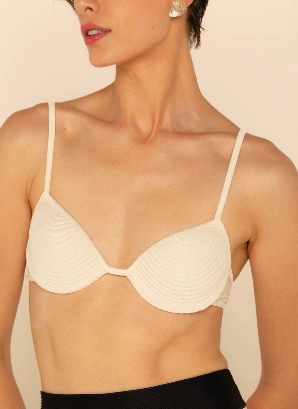 Top Nina Off-White, com aro de sustentação, dando mais conforto e exclusividade e segurança a peça.